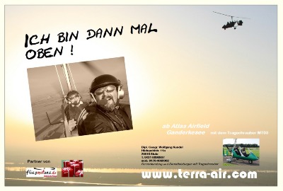 Wichtig! Für unser Publikum sind wir bis max. 22 Uhr oder sunset + 30 Min. da. Bei Interesse können auch Inselflüge stattfinden. Suchen sie auf ihrer ostfriesischen Insel Mitstreiter (ab 4 Pers.) und melden sie sich an. Die attraktiven Flugfotos gibt es gleich vor Ort (Sandra "Mona Lisa" S. und ihr Pilot Wolfgang Kundel über Borkum).
